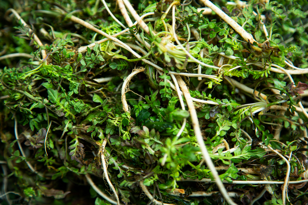 사철 냉이는 겨울이나 봄 냉이에 비해 냉이 향이 거의 없습니다. 대신 파란 잎이 풍성해 생으로 먹는 생채요리나 샐러드, 무침요리에 쓰기 적당합니다.