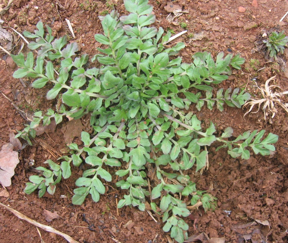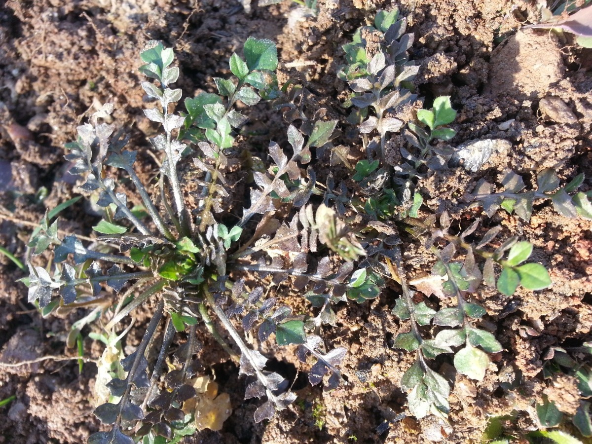 겨울 냉이의 가장 큰 특징은 잎이 거의 없거나 매우 보잘것없어 마치 못 먹게 생긴 것처럼 보인다는 것입니다. 얼핏 보면 잎이 시들었거나 오래되어 시커멓게 녹아든 것으로도 보이고, 혹은 녹색이 아주 적어서 적갈색으로 보이기도 하기 때문입니다. 한 겨울 혹한을 견디려고 잎이 광합성을 줄여 엽록소를 스스로 덜어내었기 때문입니다.
