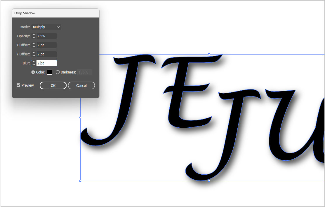 - 상단 메뉴에서 'Effect > Stylize > Drop Shadow' 메뉴를 선택합니다.(본 메뉴위치는 일러스트레이터 프로그램의 버전에 따라 다를 수 있습니다. 이것은 CS2020버전 기준입니다.)
