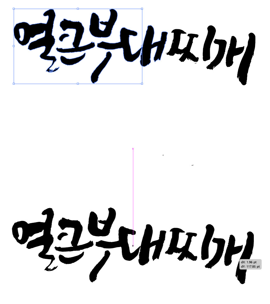 캘리그래피, 즉 붓이나 손글씨로 글자를 종이엔 써서 핸드폰으로 촬영한 이미지파일을 일러스트레이터의 벡터형식인 ai 파일로 생성하는 과정을 정리해 보았습니다. 포토샵프로그램과 일러스트레이터 프로그램 2개를 이용한 작업과정을 순서대로 보시면 이해가 되실 거예요. 참고 : 샘플 이미지는 정윤선 님의 교재(포토샵+일러스트레이터 작업의 기술 2)에서 얻었습니다.
