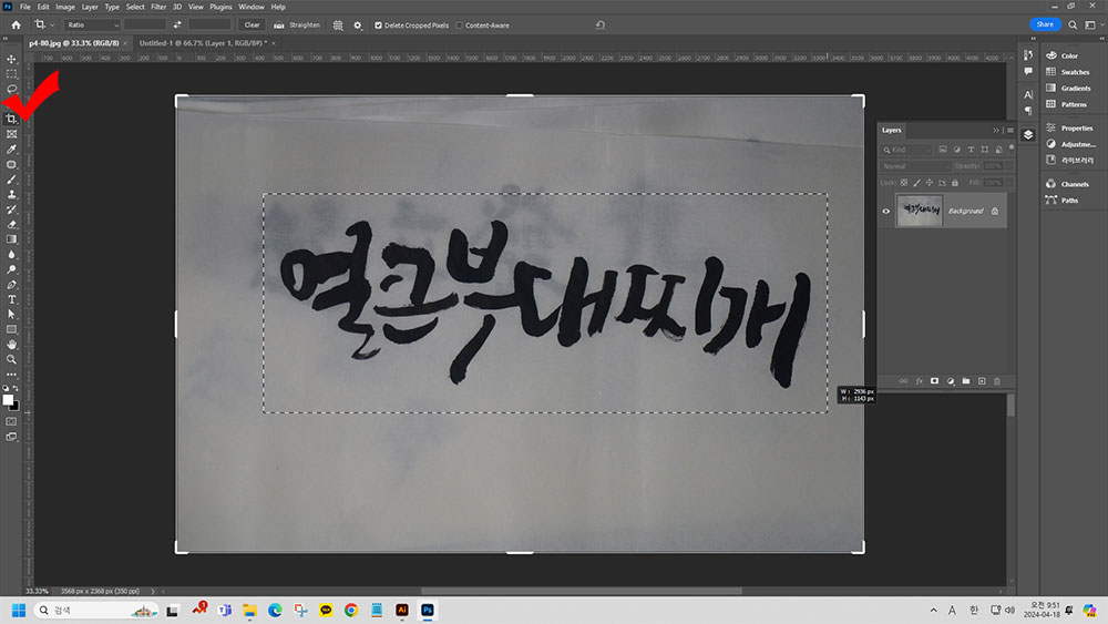 - 자르기 툴로 불필요한 가장자리 여백을 잘라냅니다.